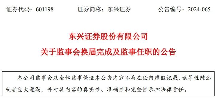 2024年8月15日,公司召开第三届职工代表大会第六次会议,已选举杜彬先生、刘勇刚先生为公司第六届监事会职工代表监事,上述监事共同组成公司第六届监事会。上述监事简历详见公司于2024年10月15日披露的《东兴证券股份有限公司2024年第三次临时股东大会会议文件》及2024年8月16日披露的《东兴证券股份有限公司关于选举第六届监事会职工代表监事的公告》(2024-036)。非职工监事自本次股东大会审议通过其任职议案之日起正式履职,任期三年,至公司第六届监事会届满;职工代表监事任期与非职工监事一致。