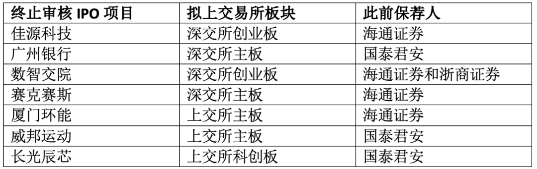 实际上,除了佳源科技,今年以来,国泰海通(含国泰君安和和海通证券)保荐IPO项目还有6家被撤回申请和终止审核。