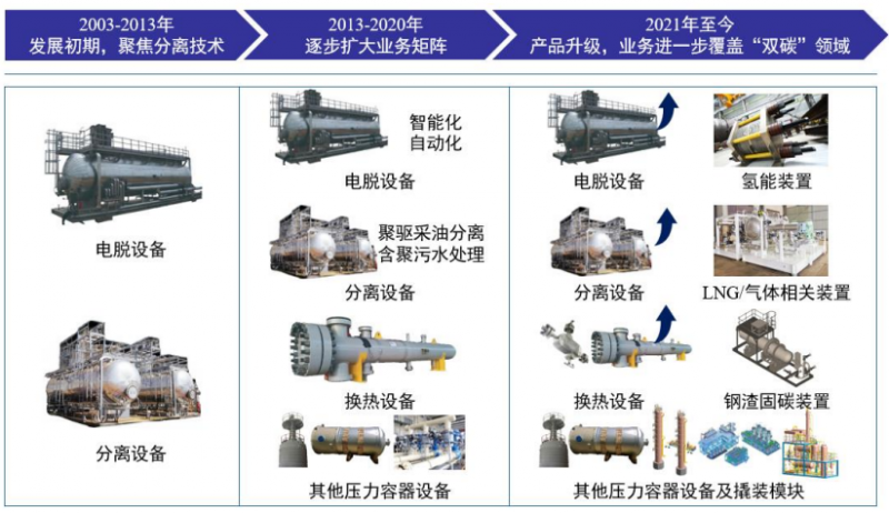 招股书显示,长江能科成立于2003年,目前的主要产品包括电脱设备、分离设备、换热设备、存储设备、固碳设备、氢能设备等能源化工专用设备以及助剂和技术服务,广泛应用于油气工程、炼油化工、海洋工程、清洁能源等领域,是我国能源化工装备领域的重要企业之一。