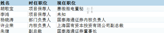 我们梳理出了当时在重组报告上签字的投行人员,发现升职的升职,消失的消失。而当时的分管投行业务的副总裁朱健,现在已经是国泰海通这只“航空母舰”的董事长了。