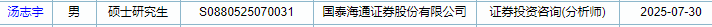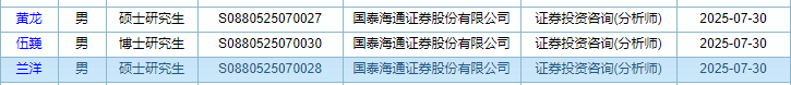继7月28日,国泰海通晋升7名分析师之后,7月30日再次晋升5名分析师,这一次依旧是老国泰君安的员工。总分析师数量也到了311名,距离中金一步之遥。