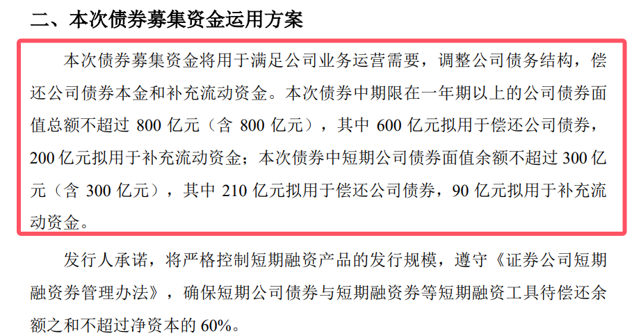 本此公司债券的募集资金用途主要是偿还公司债券本金和补充流动资金两部分。本次债券中期限在一年期以上的公司债券面值总额不超过800亿元(含800亿元),其中 600亿元拟用于偿还公司债券,200亿元拟用于补充流动资金;本次债券中短期公司债券面值余额不超过 300亿元(含300亿元),其中210亿元拟用于偿还公司债券,90亿元拟用于补充流动资金。