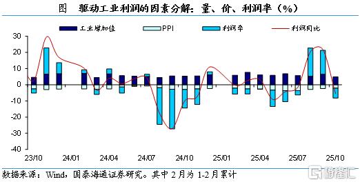 下阶段工业企业利润修复仍需依托需求改善与政策发力形成合力。量的维度来看,四季度新型政策性金融工具、消费品以旧换新等政策持续落地,有望撬动有效投资与终端消费,缓解库存消化压力,推动被动补库向主动补库切换。价的维度来看,反内卷政策持续发力将继续改善工业品价格环境,PPI跌幅或进一步收窄,叠加成本端压力逐步传导消化,企业利润率有望边际修复。但若需求修复不及预期,被动补库可能转向去库压力,且行业间成本传导不均问题仍存,利润全面回升斜率或相对平缓,后续需重点关注内需提振政策落地效果与下游订单修复进度。