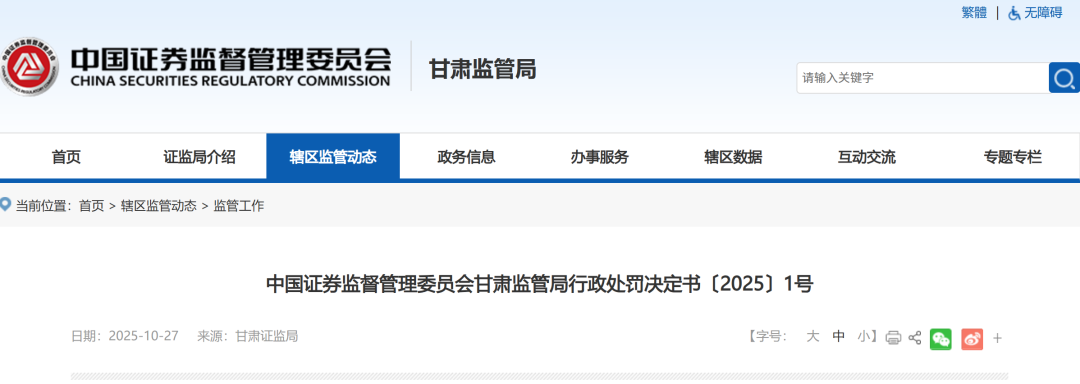 中国证券监督管理委员会甘肃监管局行政处罚决定书