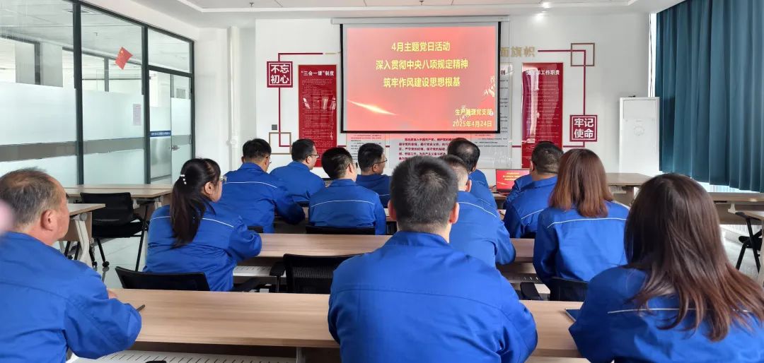 4月24日,生产管理党支部通过“专题学习+视频教学+工作部署”三维联动方式,为全体党员上了一堂生动的党性教育课。专题学习环节,集中学习了《习近平总书记关于党的建设的重要思想概论》《习近平关于加强党的作风建设论述摘编》等权威读本,通过原原本本学、联系实际学,切实增强党员干部纪律规矩意识。与会人员共同观看了《深入贯彻中央八项规定精神学习教育》专题视频,通过典型案例的警示教育,直观感受“四风”问题新动向、新表现。支部副书记吕瑞现场传达了公司2025年党建工作要点,结合企业实际提出三项重点任务:一是构建长效机制,将中央八项规定精神学习教育纳入常态化教育体系;二是创新教育载体,推进“感党恩、听党话、跟党走”群众性教育实践走深走实;三是强化示范引领,以创建“模范”党支部为抓手推动党建业务双融双促。