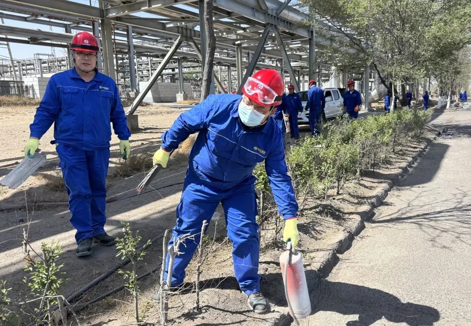 理论学习结束后,为践行绿色发展理念,增强党员的生态环保意识,按照年初整理绿化工作计划,两个党支部共同开展了“厚植北疆绿,共绘生态卷”活动。全体党员来到乌达化工北门外围南侧,开展了植绿活动,为厂区周边环境增添了一片生机。