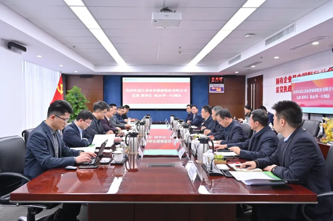 2月21日,林洋集团总裁、林洋能源董事长陆永华拜访国家电投湖北公司党委书记、董事长邹振宇,双方围绕项目开发、产品合作等方面展开深入交流,并签署战略合作协议。国家电投湖北公司总经理、党委副书记邓勇,党委委员、副总监李立新,党委委员、副总经理汤涛,董事会秘书、综合管理部主任周文林,规划发展部主任肖光武,光伏分公司总经理索吉明,林洋能源高级副总裁、林洋储能董事长方壮志,林洋能源高级副总裁、林洋新能源董事长裴骏,林洋能源高级副总裁、林洋光伏运维董事长陈金敏,林洋能源副总裁、董秘崔东旭,林洋新能源总经理、湖北公司董事长王翠玉等领导出席会议。