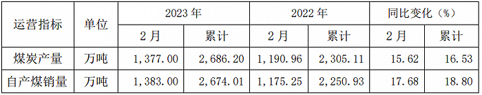 陕西煤业:2月自产煤销量1383万吨,同比增长17.68%