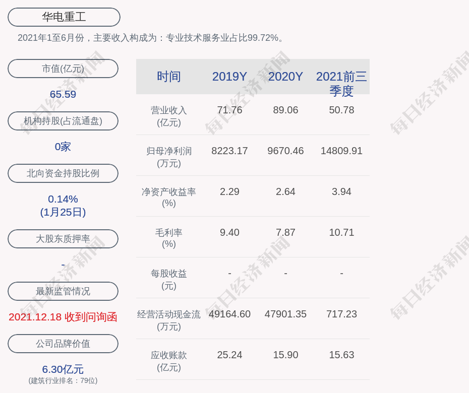 2021年1至6月份,华电重工的主要收入构成为:专业技术服务业占比99.72%。