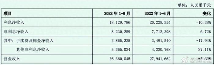 据2023年中报披露,上海银行上半年取得营收263.6亿元,同比下降5.66%,时隔5年罕见下滑;归母净利128.35亿元,同比增长1.27%;扣非后归母净利约126.25亿元,同比下滑0.19%。