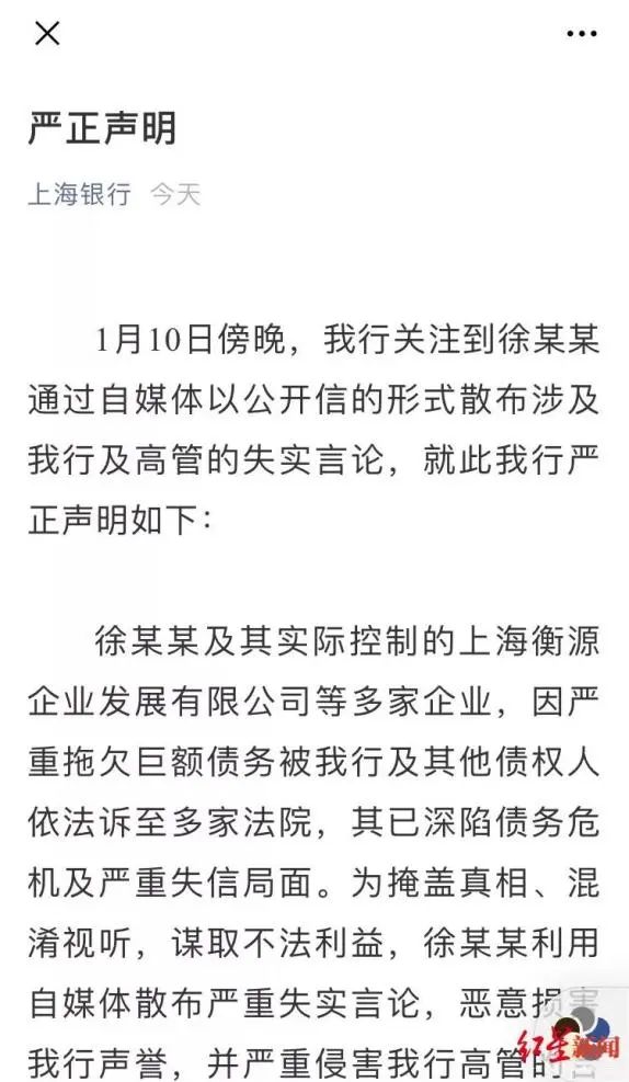 近日,本公司关注到微信公众号“上海衡源企业”发布署名为“徐国良”的指责本公司及相关高级管理人员的不实文章,并被其他网络媒介转载。