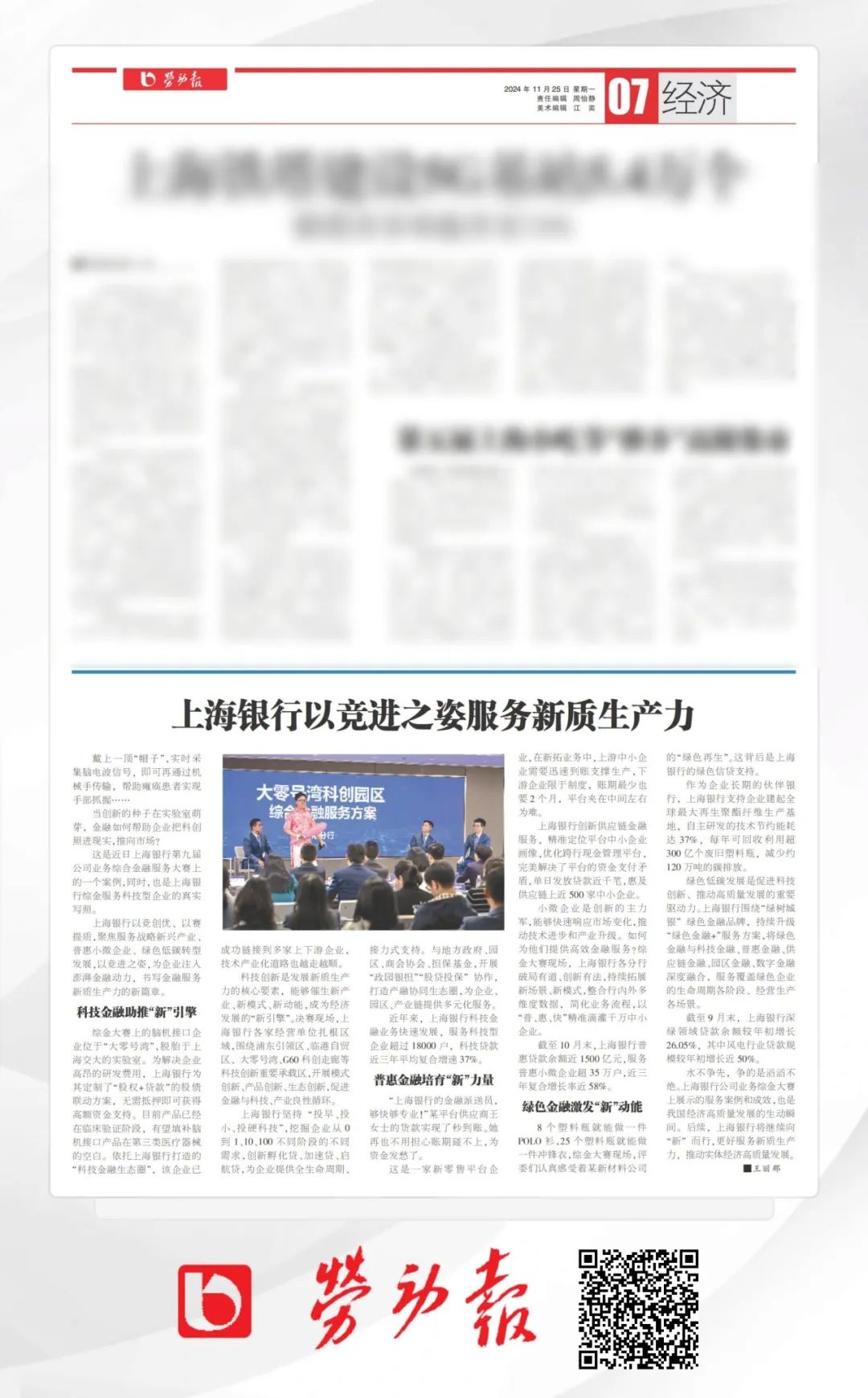 11月25日,劳动报刊发《上海银行以竞进之姿服务新质生产力》一文,全文如下: