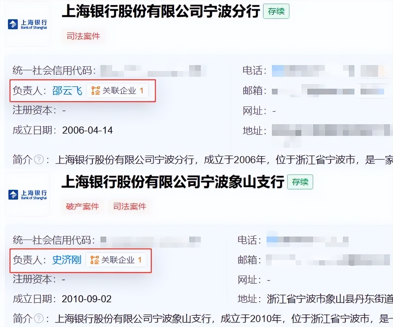 上海银行宁波分行成立于2006年4月,负责人是邵云飞;象山支行成立于2010年9月,负责人是史济刚。