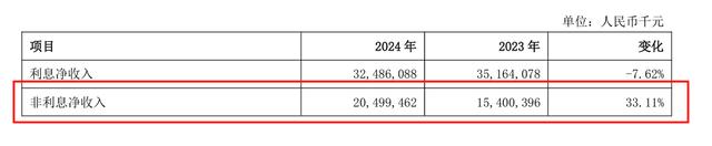 利息净收入下降的情况下,上海银行依靠非利息收入拉动营收增长。2024年,上海银行的非利息净收入达204.99亿元,同比增长33.11%。