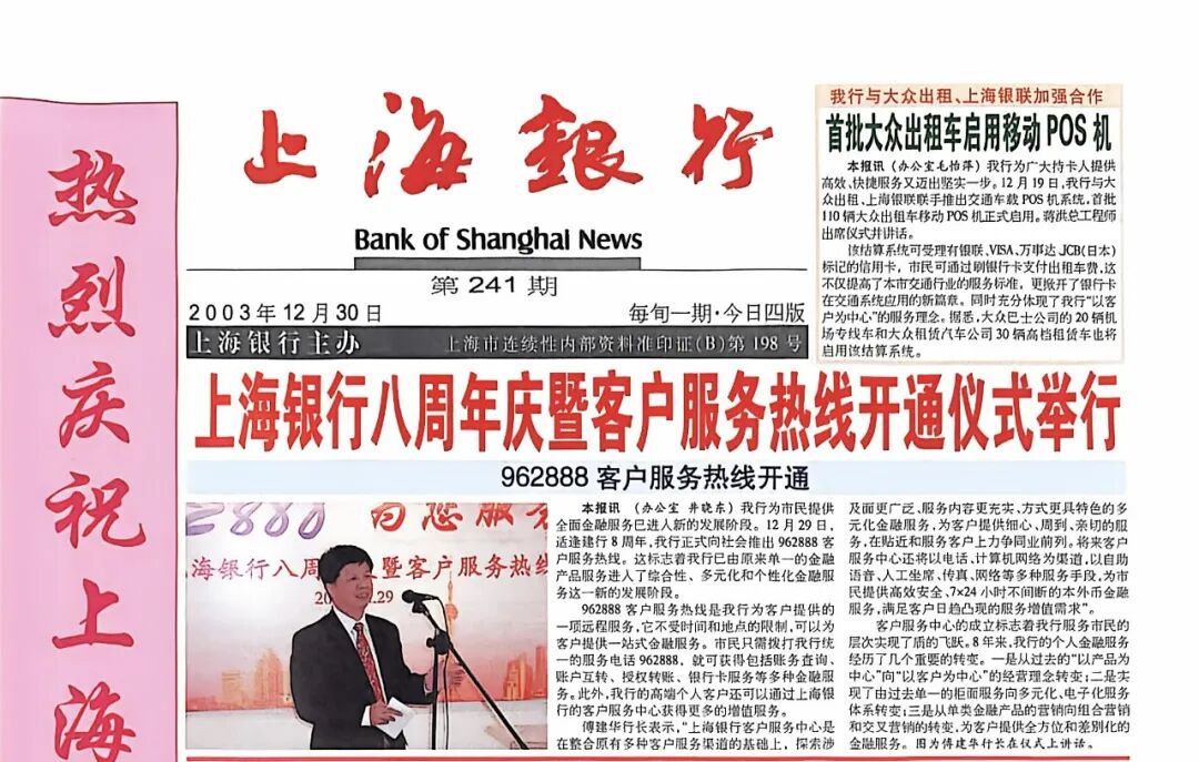 经过紧锣密鼓的努力,2003年12月29日,我们推出部署了35个坐席的962888客服热线,由时任董事长接听了第一通客户来电。跳出网点,市民通过热线即可办理查询、转账等多元化金融服务。之后随着各地分行的开立和服务范围的扩大,客服热线也于2013年升级为全国统一客服热线电话95594。