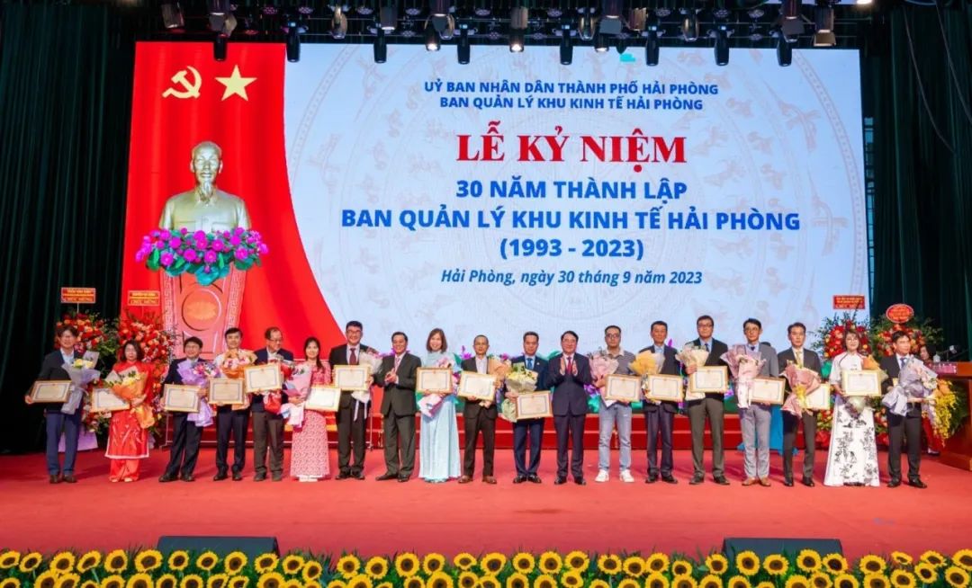 在海防经济区管理局(HEZA)成立30周年(1993-2023年)之际,该机构于9月30日召开了会议,回顾了管理局成立30年来的发展历程,并举办了论坛,为海防市的供货商和外国直接投资(FDI)企业牵线搭桥。当日出席庆祝活动的嘉宾包括中央对外部部长Le Hoai Trung先生、计划与投资部部长Nguyen Chi Dung先生,党中央委员、市委书记Le Tien Chau和市人民委员会主席Nguyen Van Tung等重要人物。