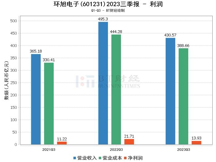 在利润方面,环旭电子2023年三季度的营业收入为430.57亿元,相比上年同期的495.3亿元减少了13.07%。营业利润为15.33亿元,相比上年同期的24.64亿元减少了37.81%。净利润为13.93亿元,相比上年同期的21.71亿元减少了35.86%。这主要是因为本期营业收入同比减少且营业利润率亦同比下降所致。