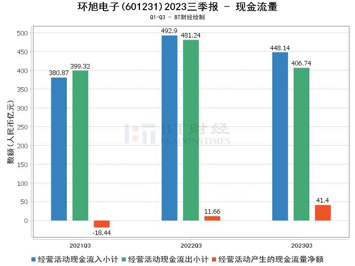 在现金流量方面,环旭电子2023年三季度的经营活动产生的现金流量净额为41.4亿元,相比上年同期的11.66亿元增长了255.18%。这主要是因为去年下半年营收成长较大,致今年上半年度收回款项增加,加上本期加强采购及存货的控管,存货占用资金下降所致。