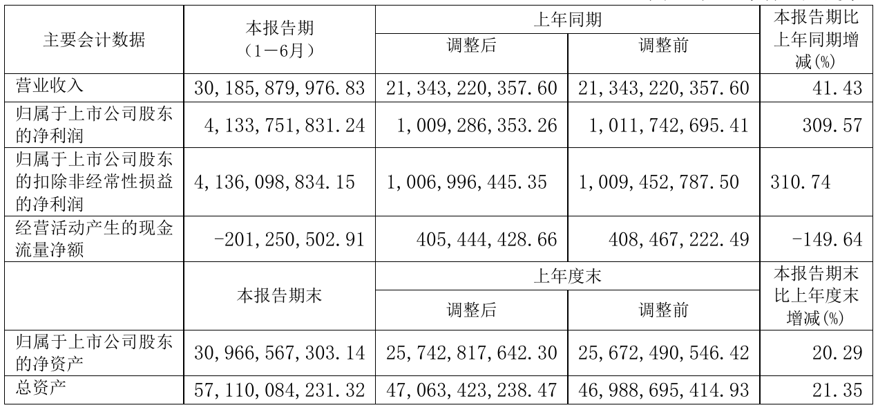 挖贝网8月17日,桐昆股份(601233)近日发布2021年半年度报告,报告期内营业收入30,185,879,976.83元,同比增加41.43%;净利4,133,751,831.24元,同比净利增加309.57%。