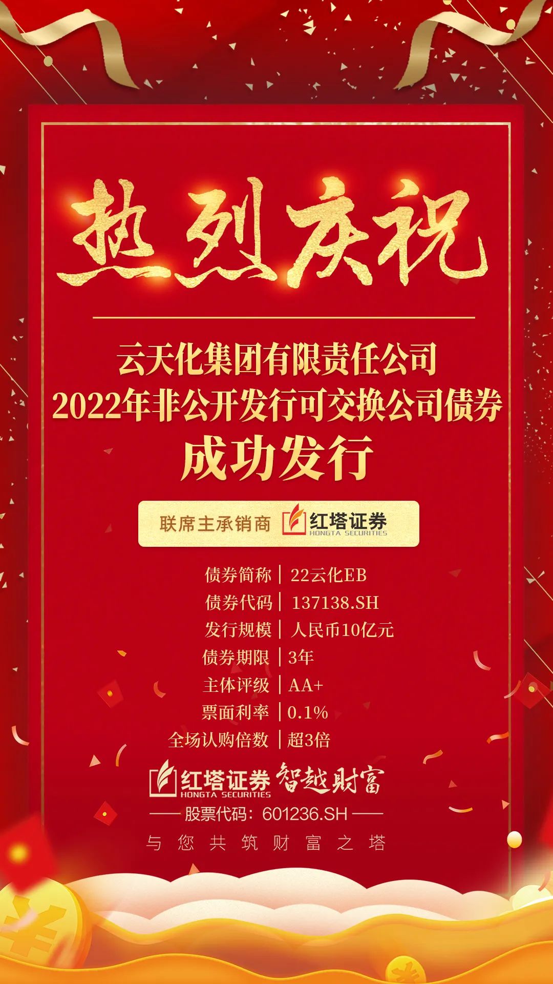 红塔证券作为联席主承销商,成功助力云天化集团本次可交换公司债券发行,积极落实红塔证券“3+2”发展战略,践行金融机构服务实体经济的责任,帮助云天化集团创新融资方式,完成盘活现有资产、调整债务期限结构、超低成本融资等多重目标,有效引导资本市场支持新能源行业发展,实现企业融资和资本市场的双向良性互动。