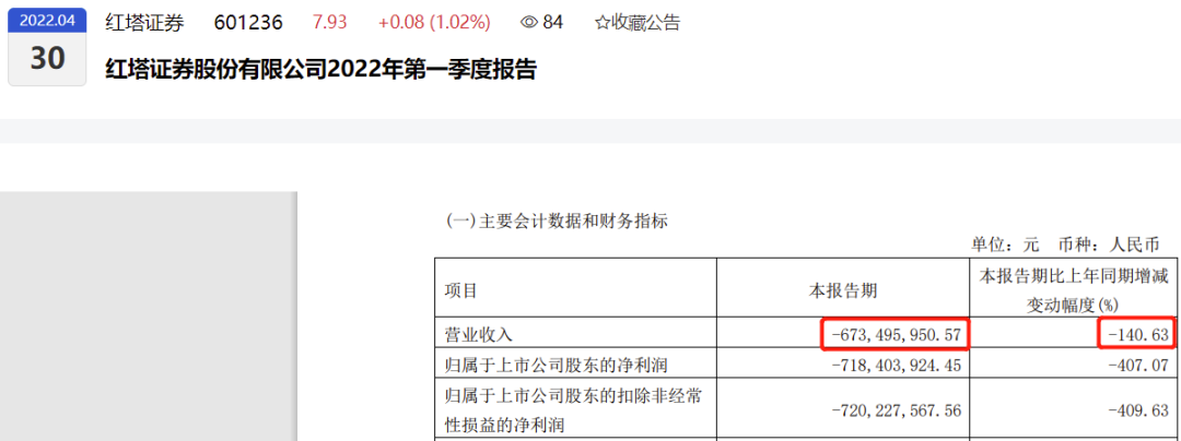 首药控股(688197)2022年第一季度营收只有708元,已让众多投资者大吃一惊。随后,又有投资者找出海创药业(688302)、迪哲医药(688192)今年一季度营收为0元的案例。更让市场吃惊的是堂堂的上市证券公司红塔证券(601236),一季度营收不只是0,竟然是-6.735亿元,同比下降140.63%。营收为0尚可以理解的话,一个上市证券公司一季度营收为负数,着实不可思议!