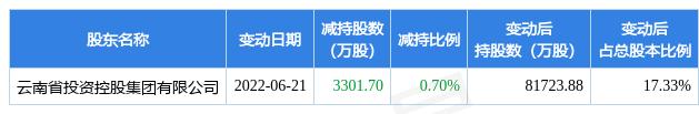 6月21日红塔证券发布公告《601236:红塔证券股份有限公司股东减持股份进展公告》,其股东云南省投资控股集团有限公司于2022年3月22日至2022年6月21日间合计减持3301.7万股,占公司目前总股本的0.7%,变动期间该股股价上涨7.11%,截止6月21日收盘报9.94元。