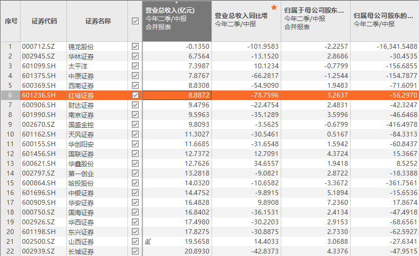 在俄乌冲突、疫情、美联储加息等因素扰动下,上半年A股市场先抑后扬,券商股价表现低迷,券商自营投资业务“重挫”,不少券商上半年投资收益亏损,拖累整体业绩。就红塔证券而言,上半年投资收益近5亿元,行业排名居中,但也因作为主要收入来源的自营投资业务下滑明显,整体业绩在业内排名靠后。