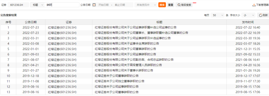 除了业绩,市场对红塔证券高管频繁变动尤其关注。Choice数据显示,2019年以来,红塔证券有13条关于董事、监事、董事长等高管辞职公告。