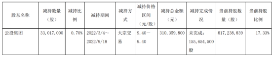 公告显示,云投集团此次减持价格区间为9.40-9.40元/股,减持总金额为310,359,800元。减持完成后,当前云投集团持有红塔证券817,238,839股,当前持股比例为17.33%。
