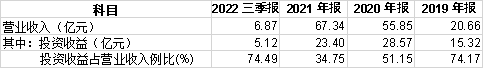 数据显示,红塔证券自营投资业务收入2022年上半年达4.65亿元,占营业收入52.36%。2019年至2022年前三季度,自营业务中的投资收益占营业收入比例均高于3成,其较高的营业利润率也成为红塔证券的利润支撑。