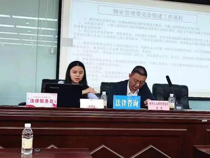 本次活动还邀请到锦绣江山律师事务所周雪莲律师以PPT形式向参加培训的所有社区居民开展法律法规知识普及,明确居民自身权利、责任与义务。活动结束后,由锦绣江山律师事务所梁涛律师为参会人员进行答疑解惑,进一步宣传普及法律法规基础知识。