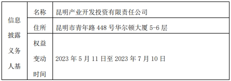 具体来看,2023年5月11日至2023年7月10日,昆明产投通过集中竞价交易方式减持红塔证券26,399,929股,占总股本比例的0.56%,减持价格区间为7.37元/股-8.02元/股。据此计算,昆明产投此次通过集中竞价交易方式减持红塔证券套现金额在1.95亿元至2.12亿元之间。