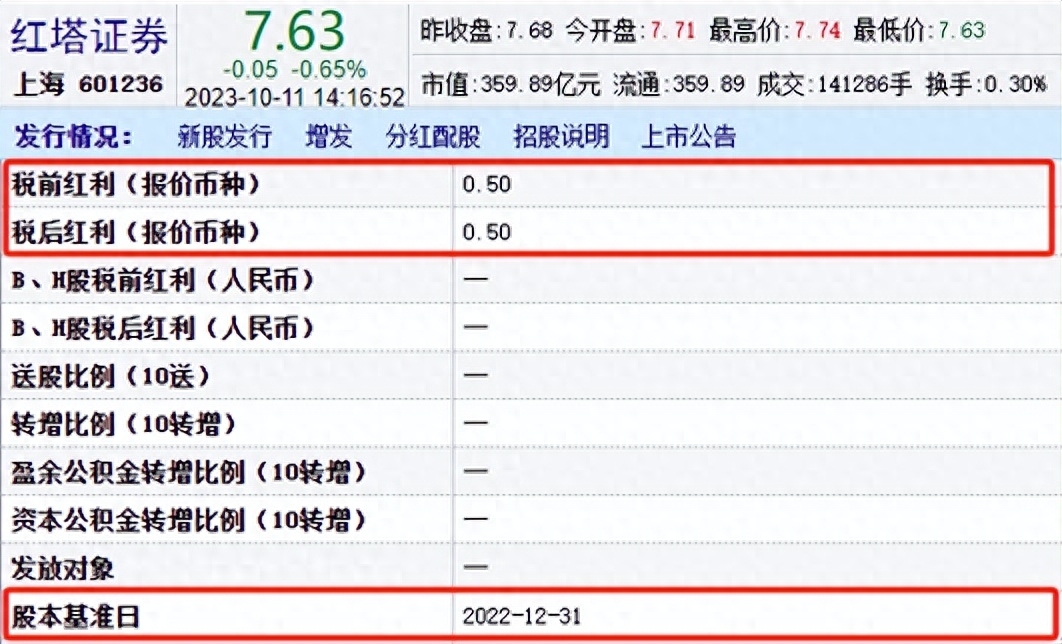 值得注意的是,截至近日,已有36家上市券商发布了2022年度权益分配实施公告,不过,由于券商去年业绩大幅下滑,今年券商分红规模也出现减少,红塔证券分红规模同比下滑超过50%。但数据显示,红塔证券去年净利润0.39亿元,以截至2022年12月31日的总股本4,716,787,742股为基数计算,每10股派发现金红利0.50元,拟派发分红总额却高达2.36亿元,拿出超过五成的净利润进行现金分红。