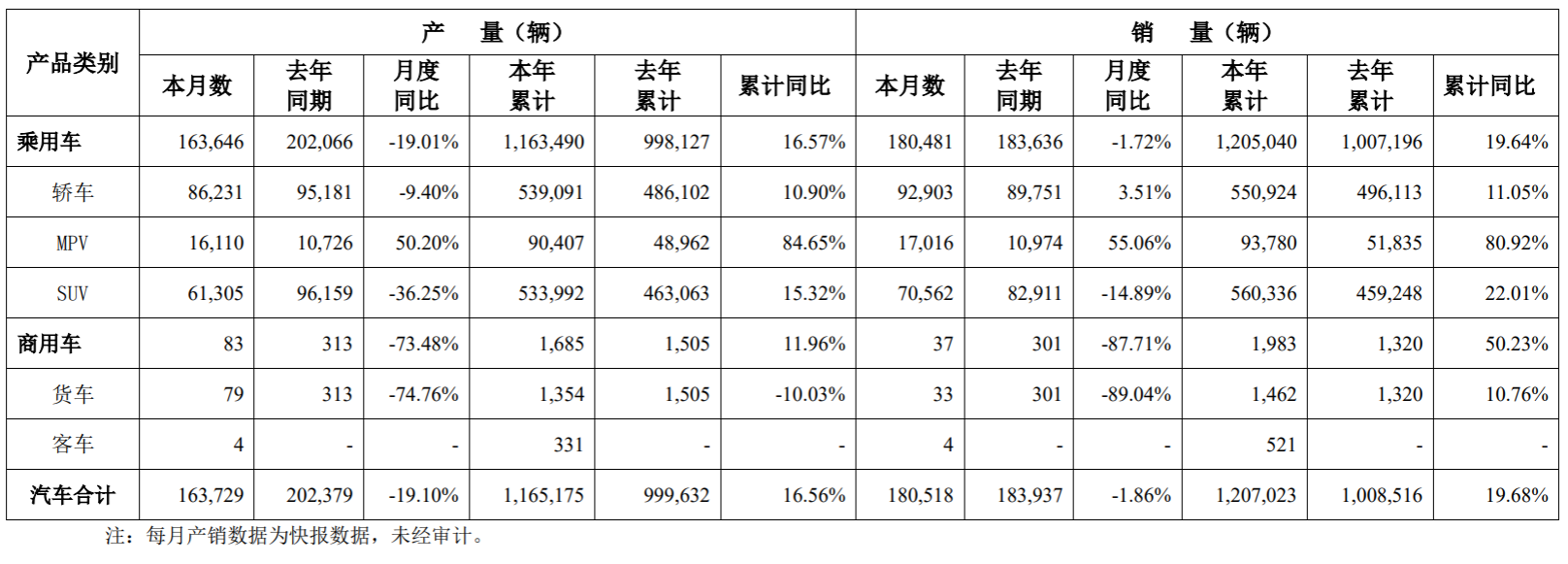 另据数据显示,广汽集团7月汽车产量约为16.37万辆,同比下降19.1%,1-7月累计产量约为116.52万辆,同比增长16.56%。7月汽车销量约为18.1万辆,同比下降1.86%,1-7月累计销量为120.70万辆,同比增长19.68%。