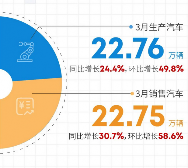 广汽集团旗下的子品牌广受车迷们所喜爱,包括广汽乘用车、广汽本田、广汽丰田、广汽三菱等。4月7日,广汽集团发布一季度产销数据,累计生产汽车59.81万辆,同比增长25%;累计销售汽车60.82万辆,同比增长22.5%;3月生产汽车22.76万辆,同比增长24.4%,环比增长49.8%;3月销量22.75万辆,同比增长30.7%,环比增长58.6%。