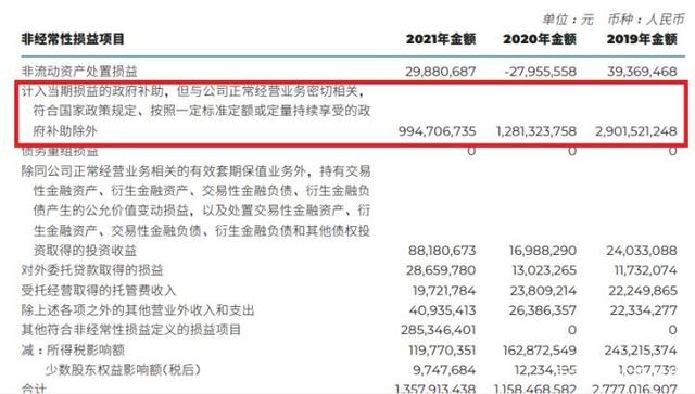 所以获得补助,这是肯定的,广汽集团自然也不例外。比如计入当期损益的政府补助(但与公司正常经营业务密切有关,符合国家政策规定、按照一定标准定额或定量持续享受的政府补助除外),2021年为接近10亿元,2020年则是接近13亿元,2019年更是超29亿元。