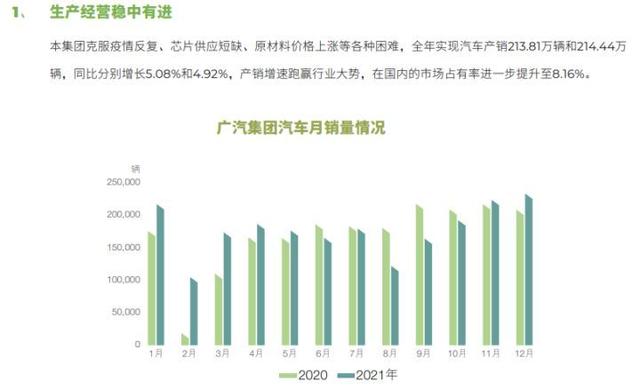 广汽集团2021年的销售和利润表现可以说很不错。