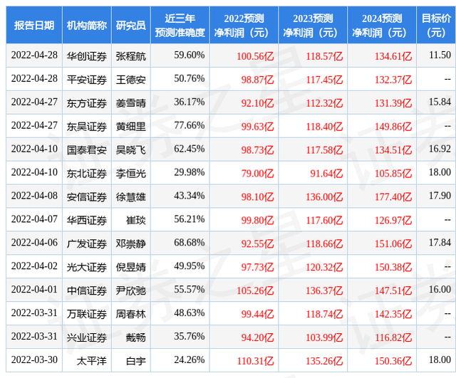 最新盈利预测明细如下: