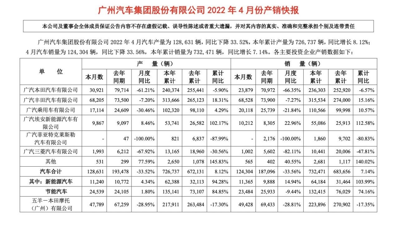 针对以上不同品牌产销下滑情况,广汽集团表示,3月份以来,受多地疫情影响,工厂停产,供应链严重受阻,“缺芯”风险不断升级。面对这一困难,广汽集团将始终迎难而上,成立保供稳供小组,及时协调零部件企业物流通行及复工复产等工作。同时,广汽集团也将持续推进零部件代替方案,并与粤芯半导体等国内芯片公司签署战略合作协议,加强芯片产业合作,全面应对各项难题。