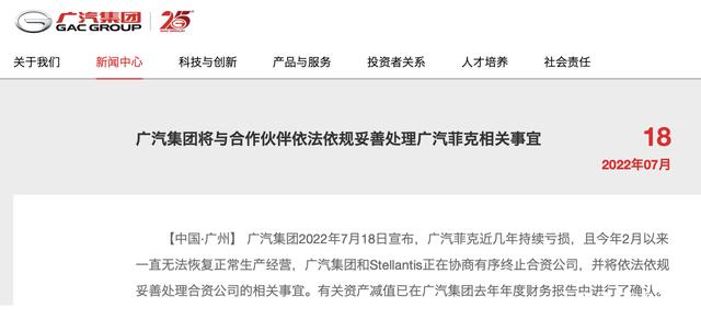 7月18日,Stellantis集团与广汽集团先后宣布,股东协商撤资,将终止合资广汽菲克。不过,二者官宣的说辞有些区别。