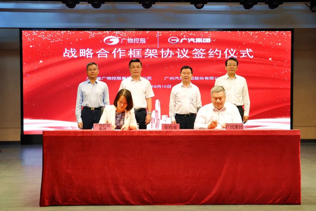 8月10日,广物控股集团与广汽集团在广物中心5楼多功能会议厅举行战略合作框架协议签约仪式。广物控股集团党委书记、董事长方启超,党委副书记、董事、总经理梁庆彦与广汽集团党委书记、董事长曾庆洪,党委副书记、总经理冯兴亚共同见证,广物控股集团党委委员、副总经理钟慧玲与广汽集团执委会委员刘伟代表双方签署《广物控股与广汽集团战略合作框架协议》。