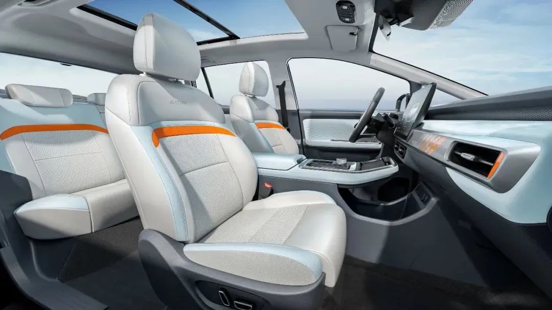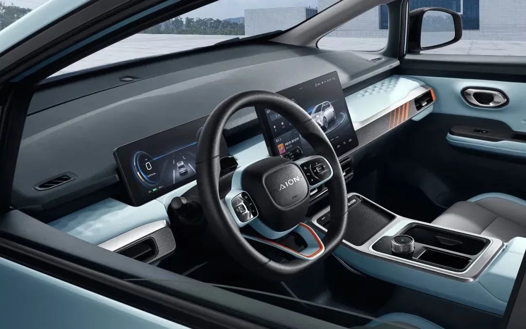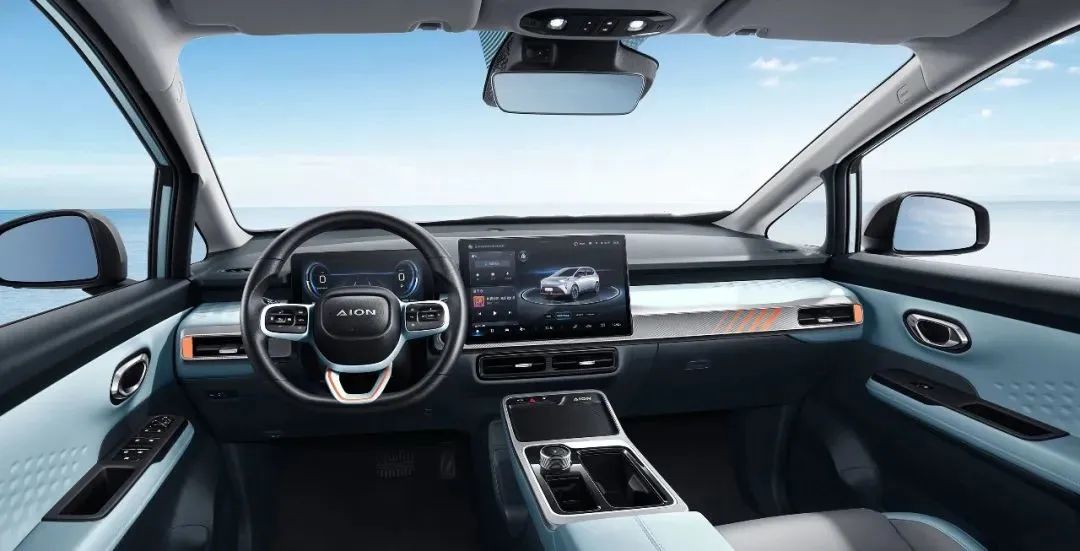 AION Y车身专属色为高明度、低饱和度的“天青色Azure”,质感犹如天空般通透纯粹。辅助色为亮橙色,轻盈灵动的同时又有无限热力与活力。