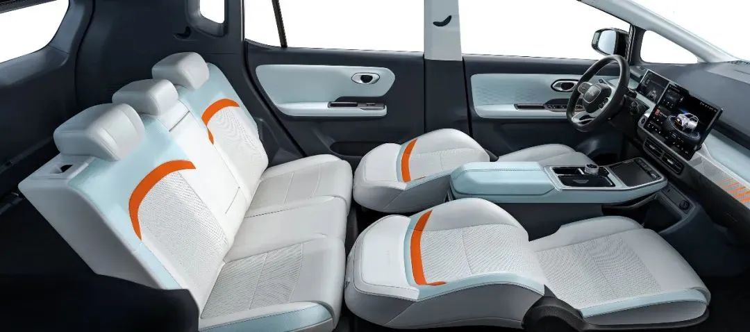 AION Y内饰运用专属清新静谧马卡龙色,搭配亮橙色3D运动织物,时刻彰显年轻活力。通过CMF 创新以及精致工艺、天然环保材料的设计,做到了以趣味打败无聊,以艺术重构审美,以科技完成进化。