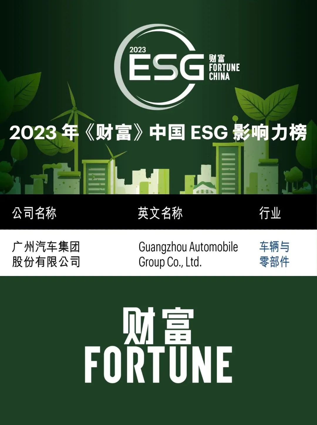 2023年《财富》中国ESG影响力榜公布,广汽集团继2022年之后第二次上榜。