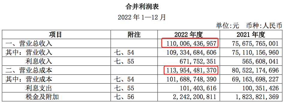 事实上,从广汽集团的营业总收入和总成本表现也能看出一些端倪。财报显示,广汽集团2022年的营业总收入为1100.06亿元,但其营业总成本却高达1139.54亿元,较营业总收入高出39.48亿元。