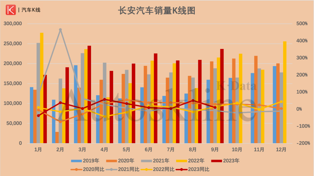这意味着,第四季度,长安汽车月均销量必须突破31万辆,否则全年目标将无望达成。而回看近几年长安汽车的销量表现,月销突破25万辆都十分罕见,要想达到31万辆以上的难度可想而知。