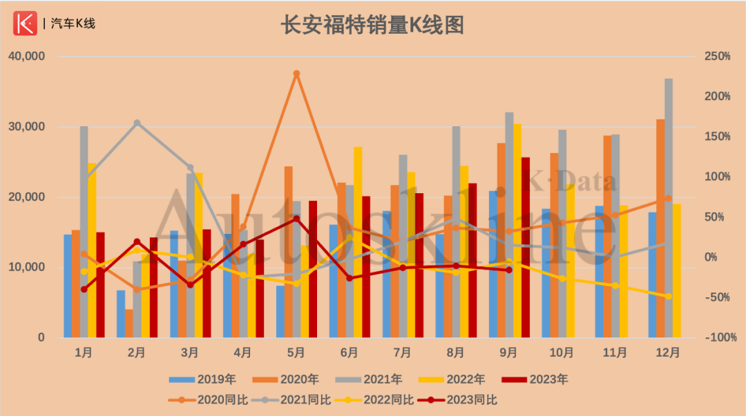 也正是在这一年,长安福特又回到了单月销量同比6连跌的颓势。哪怕到了2023年,在过去的9个单月当中,有多达6个月的销量都深陷于同比下跌的困境当中。