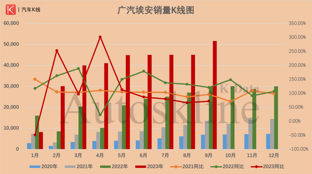 这意味着,第四季度广汽埃安月均销量至少要突破6.63万辆,几乎是埃安1-9月,月均销量的1.7倍。