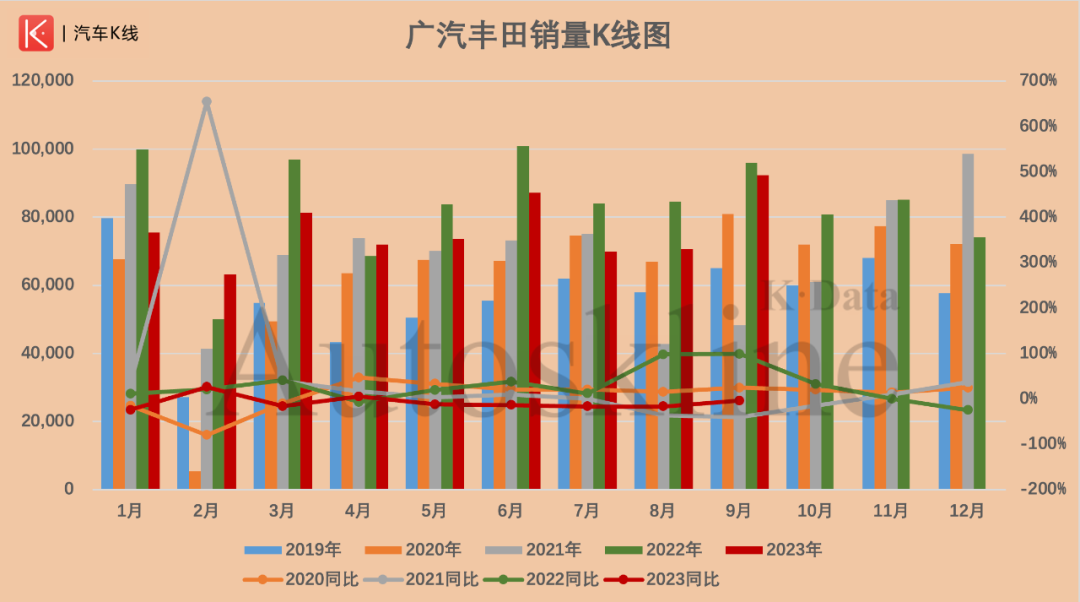 透过产销快报,人们发现,广汽丰田在这个“金九”创下了单月销量同比5连跌。