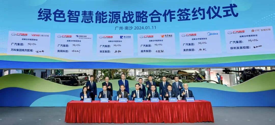 为响应国家大力培育车网融合互动的新型产业生态的实施意见,此次活动中广汽集团与珠实集团、越秀集团、保利发展控股、万科集团南方区域、南网科技、美的集团等六家企业签署了战略合作框架协议。未来,合作各方将发挥各自领域的核心竞争力及技术优势,合力推进汽车、能源、房地产、智能家居等领域的融合创新和绿色转型,共同打造人类绿色生活新方式,率先为珠三角市民提供绿色、低碳、智能、便捷的美好生活,后续还将逐步推广到全国。